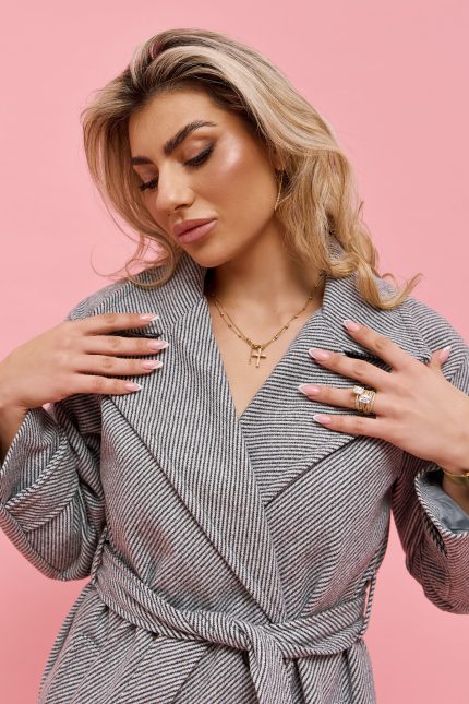 Το κλείσιμο με δύο εντυπωσιακά κουμπιά ολοκληρώνει με λεπτότητα ένα κομμάτι που συνδυάζει αισθητική, ζεστασιά και στυλ.