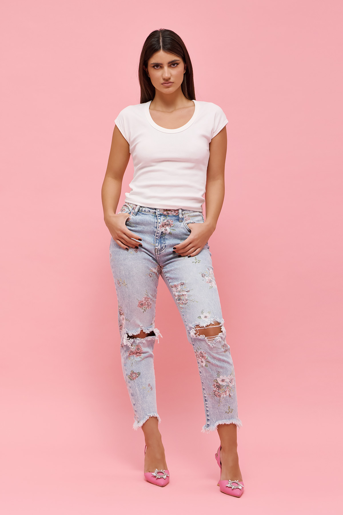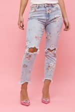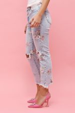 Αναδείξτε τη θηλυκότητα και την κομψότητά σας με αυτό το premium γυναικείο τζιν floral παντελόνι, ένα κομμάτι που συνδυάζει τη διαχρονική αξία του denim με τη ρομαντική πολυτέλεια των λουλουδιών.