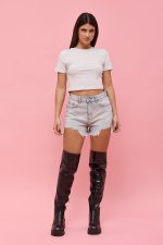 Αναδείξτε τη λάμψη σας με αυτό το εντυπωσιακό γυναικείο jean short με strass.